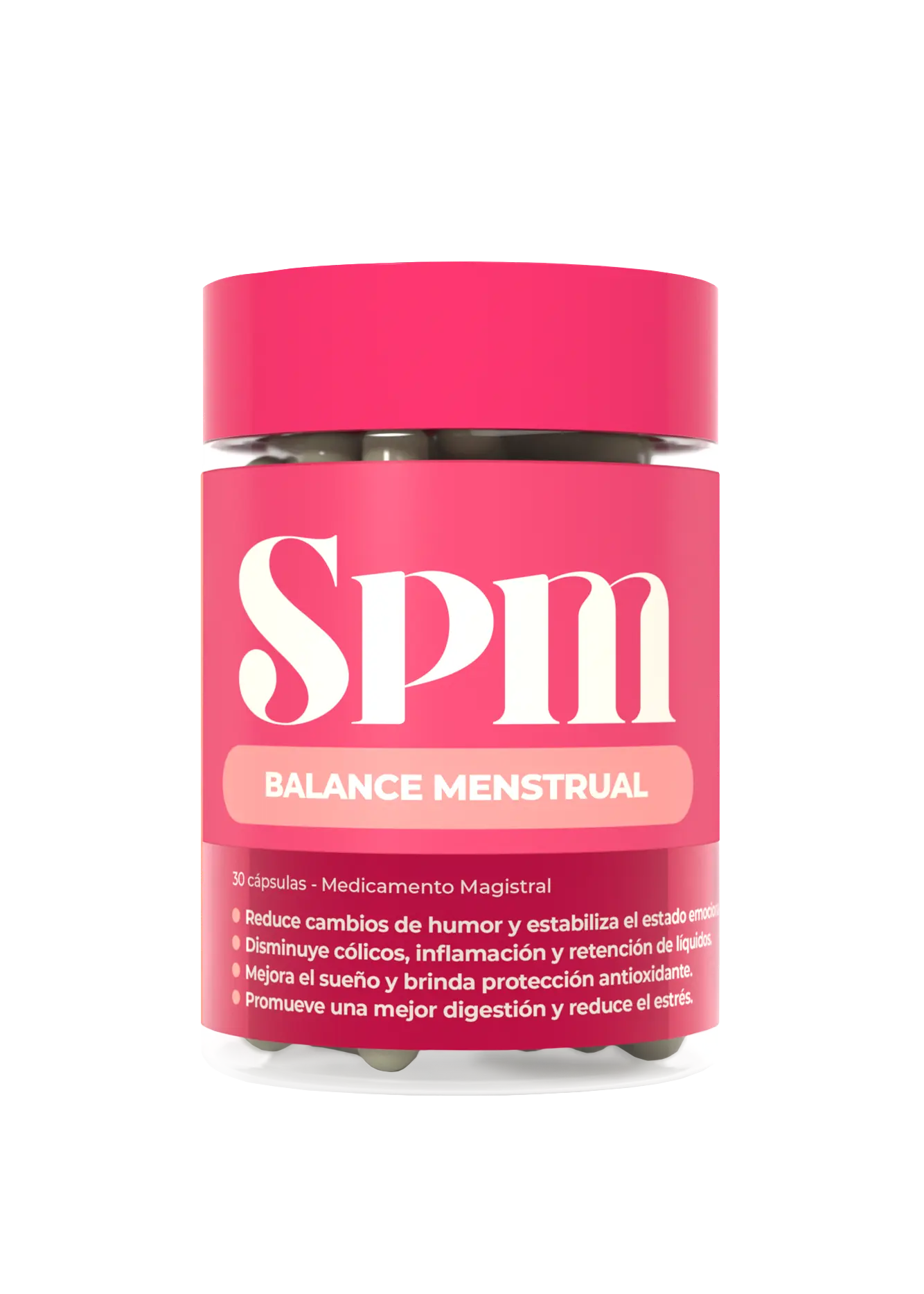 En AURAH creamos SPM, una fórmula pensada para acompañarte en esos días difíciles sin alterar tu ciclo. Contiene activos que trabajan de forma integral en: