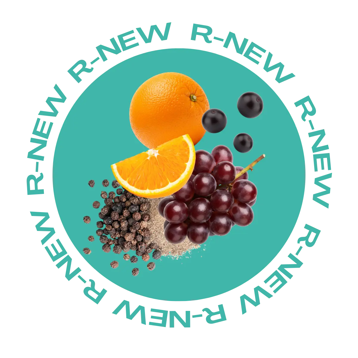 La fórmula de R-NEW combina resveratrol, semilla de uva roja (OPC), açaí y vitamina C, ingredientes asociados a la protección celular, la activación de rutas de longevidad y el cuidado vascular.