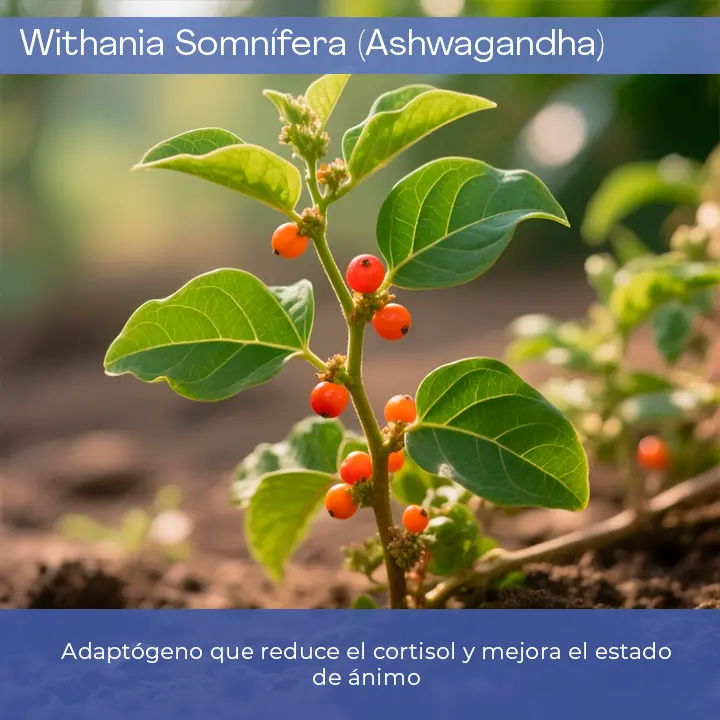 ● Ashwagandha: Disminuye el cortisol y mejora la calidad del sueño