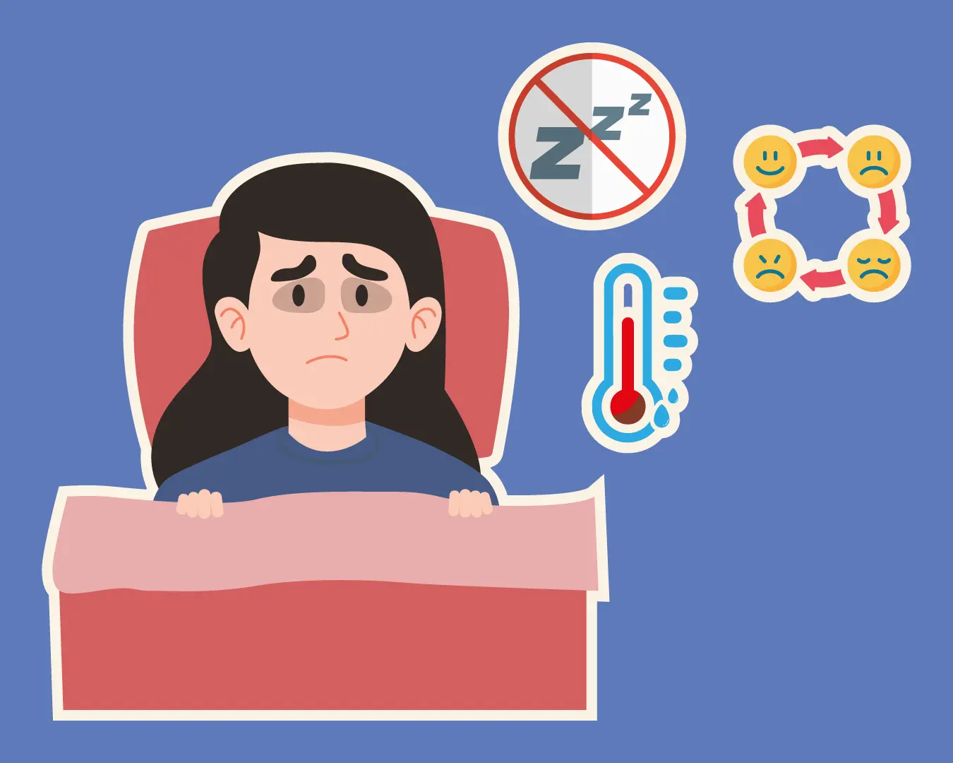 A medida que bajan la progesterona y la melatonina, el reloj biológico que regula el sueño (ritmo circadiano) se desincroniza. Esto provoca dificultad para conciliar el sueño, despertares frecuentes o sueño ligero.