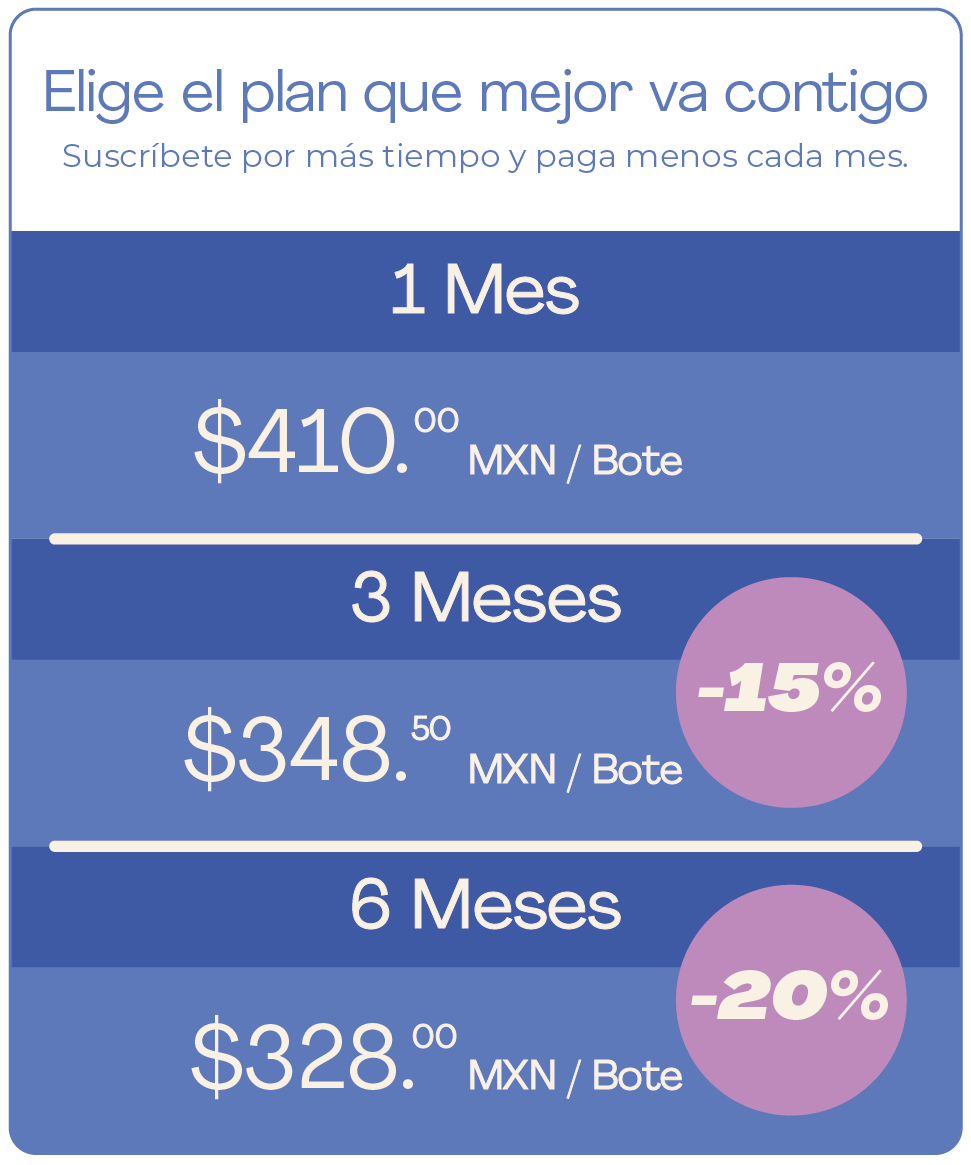 Toma 1 cápsula cada noche, 30 minutos antes de dormir, y mantenla de forma continua durante toda tu transición hormonal. Para mejores resultados, se recomienda un uso mínimo de 3 meses para estabilizar los síntomas. Disponible en presentación mensual o en planes de suscripción de 3 y 6 meses.